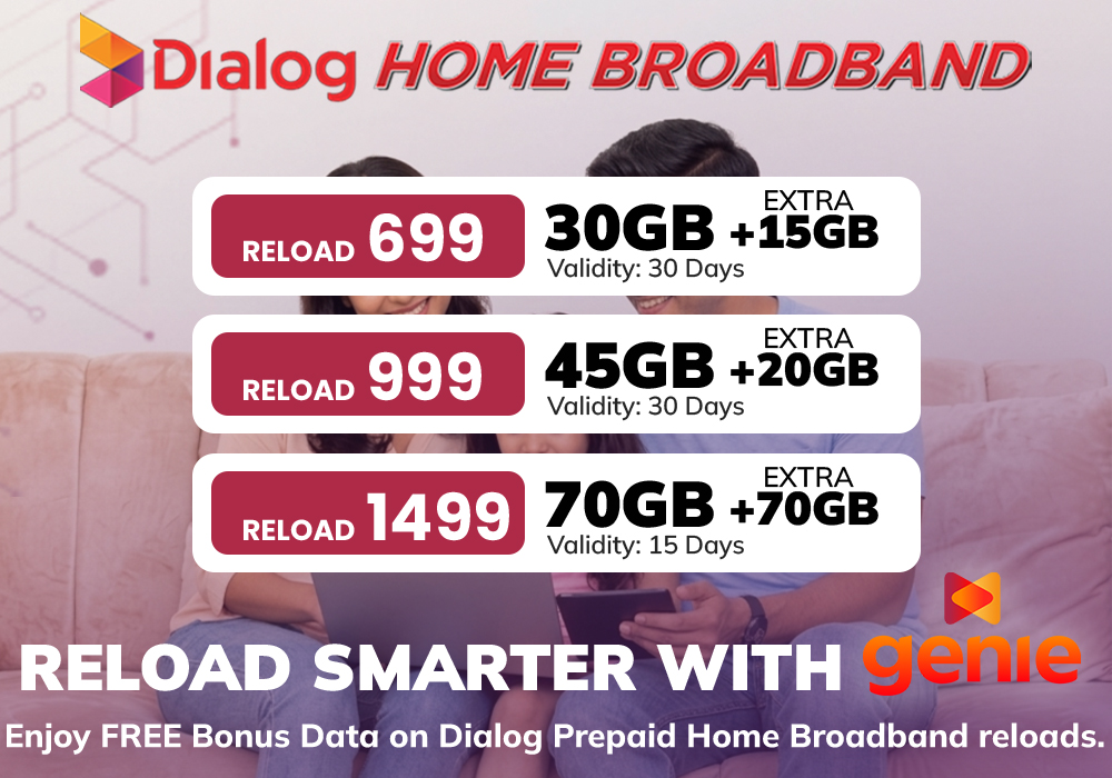 Reload Dialog Prepaid Home Broadband using eZ Cash via Genie and Get Bonus Data Free!
